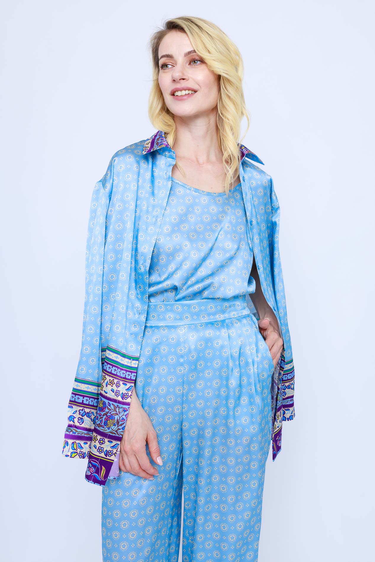 Топ из шелка от костюма Дезири имеет прямой крой и свободную посадку, благодаря чему будет прекрасно смотреться на любом росте и типе фигуры.