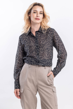 Женская рубашка из шелка и хлопка Оливковый леопард