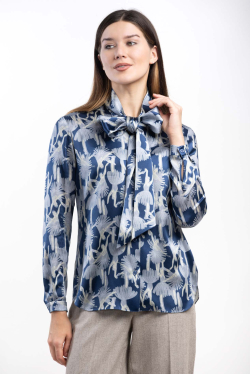 Натуральный шелк с мягким атласным блеском привлекает взгляды и создает эффект роскоши. Авторский принт делает эту блузку неповторимой и запоминающейся.