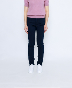 Модель облегающей посадки в сочетании с темным цветом стройнит силуэт. Смесовый состав ткани рассчитан на постоянную носку. Основная доля в составе приходится на лиоцелл и хлопок. Ткань приятная к телу, прекрасно дышит, пропускает влагу. Благодаря небольшому добавлению эластана, брюки приобретают эластичность и приятно тянутся, не вытягиваются во время носки.