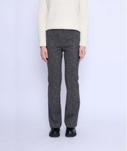 Брюки прямого кроя, облегающей посадки. Особенность модели - пояс на резинке. Эта деталь делает брюки комфортными для повседневной носки. Стильный рисунок "ёлочка" в черно-белой гамме отлично впишется в любой гардероб.