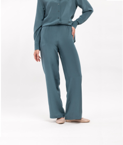 Брюки из натурального шелка выполнены без застежек и молний и дополнены мягкой резинкой на поясе, такая модель считается одной из самых удобных и универсальных моделей, которая подойдет под разные случаи жизни. Брюки с резинкой прекрасно садятся на фигуре, не стесняют движений, не перетягивают область талии.