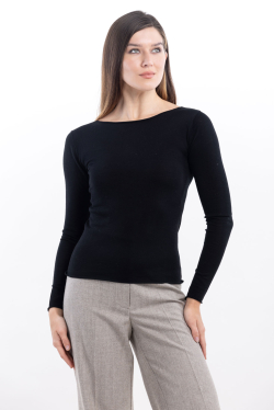 Джемпер выполнен в базовом черном цвете. Он считается практичным и немарким, подходит для большинства образов. Чёрный джемпер и джинсы — идеальный базовый комплект для прогулки или встречи с друзьями. Черный джемпер с приталенным жакетом — образ, который всегда будет выглядеть элегантно и деловито. Черный джемпер с шелковой юбкой – лаконичный вариант для вечернего выхода.
