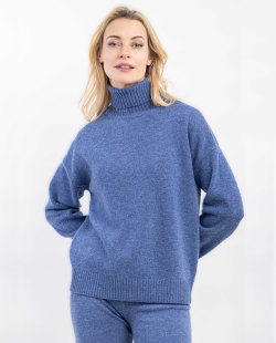Теплый свитер с высоким воротом выполнен из натурального овечьего пуха. Представленная модель имеет длинный просторный рукав, дополненный манжетами, которые позволяют сохранить и подчеркнуть объемную форму рукава.