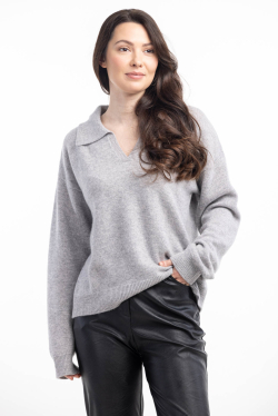 Мягкий и теплый кашемировый джемпер с воротом в стиле поло.