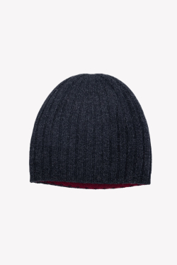 Шапка из натурального кашемира. Модель двухслойная: внешняя сторона выполнена вязкой в широкую резинку, а внутренняя - гладкой вязкой из пряжи другого цвета.