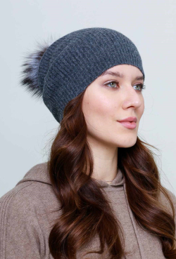 Вязаная шапка из верблюжьего пуха с помпоном из меха песца.