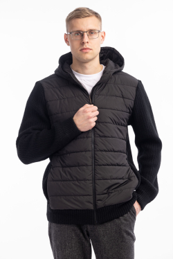 Мужской кардиган с капюшоном сочетает в себе вязаный шерстяной кардиган и стеганую куртку.