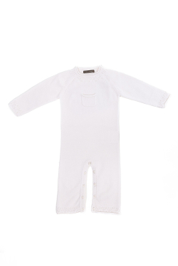 Комбинезон для детей из самого нежного и мягкого кашемира. Модель прямого кроя с длинными рукавами. Пуговицы на штанинах сделают процесс смены одежды легким и быстрым.