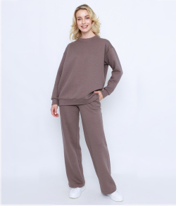 Костюм выполнен в цвете кофе с молоком – это воплощение утонченного стиля и непревзойденного комфорта. Мягкий, приятный оттенок, напоминающий любимый напиток, создает гармоничное настроение и заряжает позитивной энергией.