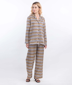 Свободный крой брюк не сковывает движения, обеспечивая ощущение полной свободы. Брюки идеально сочетаются с рубашкой из комплекта, создавая гармоничный и стильный образ, который подойдет как для прогулок по городу, так и для летних вечеринок.