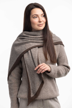 Большая косынка из пуха яка с контрастной окантовкой по всему краю.