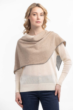 Косынка из натурального кашемира с контрастной окантовкой по всему краю, имеет форму ромба.