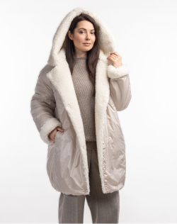 Удлиненная куртка из шерстяного меха с капюшоном.