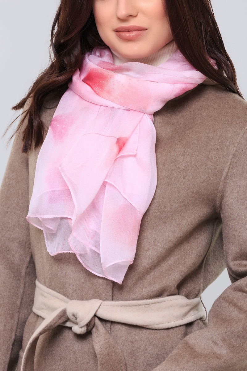 Полупрозрачный нежно-розовый палантин с цветочным орнаментом.