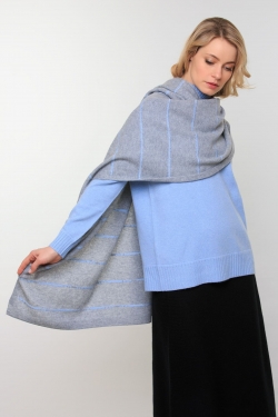 Палантин из натурального кашемира тонкой вязки с рисунком в виде узких контрастных полосок другого плетения.