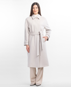Длинное пальто из вирджинской шерсти и кашемира. Итальянская ткань прошла особую обработку, став особенно мягкой и уютной.