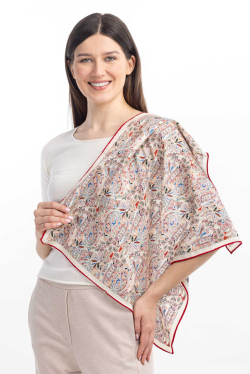 Сочетание шерсти и шелка придают платку особенную мягкость и легкость, создавая приятное ощущение при касании. Он обволакивает вас теплотой и комфортом, даря ощущение нежности и роскоши.
