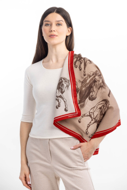 Двусторонний платок из шерсти и шелка с изображением лошади