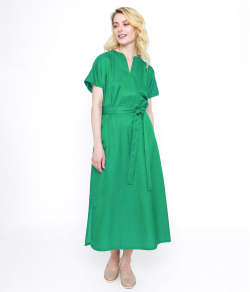 Платье Мелани выполнено с резинкой на талии, которая прекрасно формирует талию. Дополнительный акцент на талии создает пояс, который можно повязать на талии бантом или лаконичным узлом. Свободный цельнокроеный короткий рукав создает мягкую и женственную линию плеч. Рукава довольно широкие и не будут давить на кожу. Вырез имеет вертикальный разрез по центру. Он выглядит деликатно и придает изделию некоторую игривость и оригинальность.