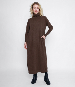 Длинное платье выполнено гладкой вязкой из натурального пуха яка. Оно сочетает в себе положительные свойства натуральной шерсти и непринужденную грацию покроя, который подчеркивает достоинства фигуры и скрывает недостатки.