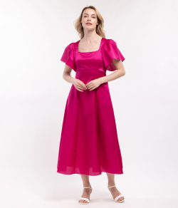 Платье Мэйси представлено в двух притягательных оттенках: сочная фуксия и глубокий темно-зеленый.