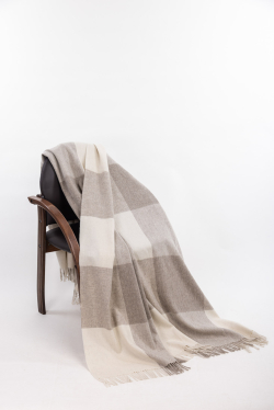 Уютный теплый плед из овечьего пуха в светлых тонах.