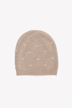 Шапка из натурального кашемира тонкой вязки с узором в горошек.