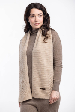 Роскошный шарф из 100% натурального неокрашенного кашемира выполнен плотной вязкой и дополнен рельефными косами.