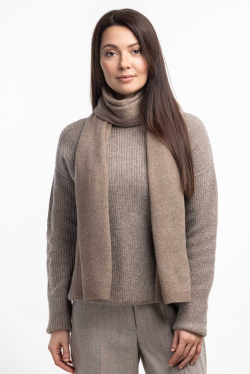 Лаконичный вязаный шарф из натурального кашемира. Природный бежевый цвет легко впишется в любой гардероб.