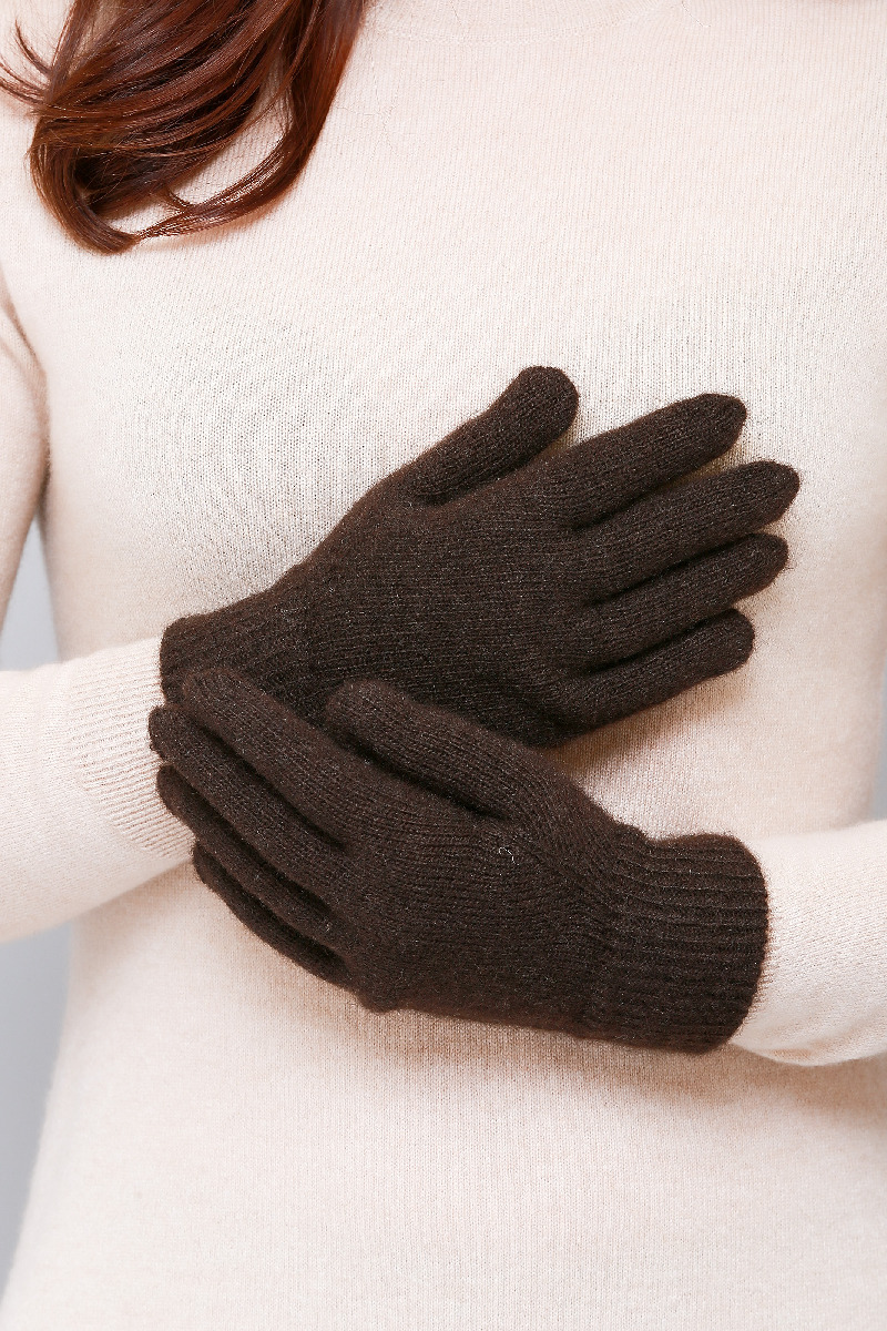 Однотонные темно-коричневые перчатки.