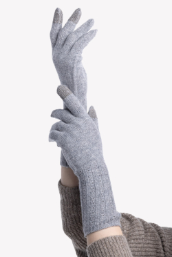 Вязаные кашемировые перчатки дополнены электропроводящими волокнами, позволяющими взаимодействовать с экраном сенсорного телефона не хуже человеческих рук.