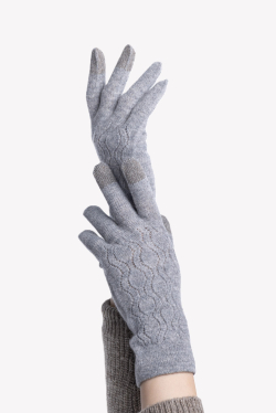 Мягкие кашемировые перчатки с ажурным узором. Перчатки оборудованы электропроводящими волокнами, позволяющими взаимодействовать с экраном гаджета не хуже человеческих рук.