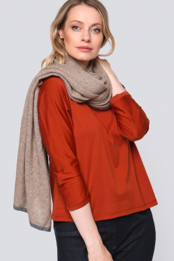 Однотонный кашемировый палантин с отделкой по краям контрастного цвета. Палантин легкий и мягкий, легко драпируется. Его можно носить вместо головного убора, завязывать как шарф, накинуть на плечи.