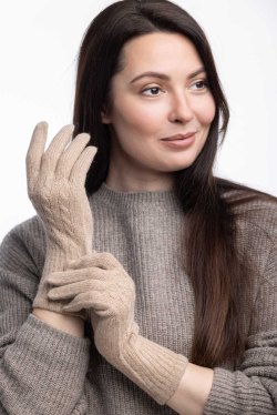 Женские перчатки из верблюжьего пуха с косами