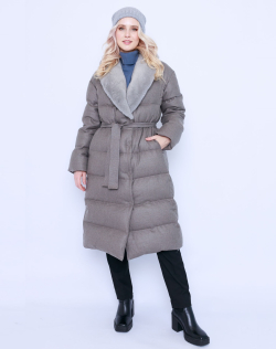 Зимнее пальто - пуховик с отделкой из меха норки Виорика