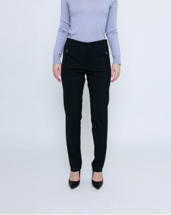 Модель имеет посадку на талии с невидимым поясом. Эластичный плотный материал из полиэстера и вискозы обеспечивают высокий комфорт при ношении.