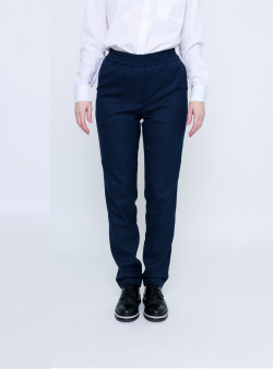 Брюки имеют прямой крой, слегка зауженный к низу. Изделие имеет комфортную посадку, фиксируются на талии при помощи вшитой резинки, которая не стесняет движений и не перетягивает область талии. Брюки выполнены с подкладом из приятной, струящейся ткани.
