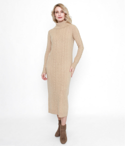 Модель прямого свободного кроя не сковывает движений. Вязаная фактура обеспечивает дополнительную эластичность, что придает платью комфортную посадку на любой фигуре.