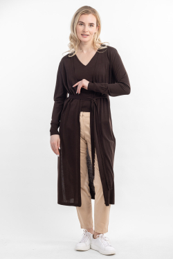 Благодаря длине и мягкой фактуре изделие выглядит женственно, элегантно, добавляет романтичность и роскошь женскому образу. Прямой классический силуэт подчеркивает лаконичность данной модели и является самым актуальным и универсальным для любого типа фигуры. Благодаря глубоким боковым разрезам кардиган будет красиво струиться при движении. Кардиган дополнен съемным поясом, который удачно подчеркнет талию. Данная модель также предусматривает вариант носки в расстегнутом виде. Кардиган – модель вне времени и моды, его любят и носят круглый год, всегда можно взять с собой на прогулку, при желании застегнуть и расстегнуть, комбинировать с любой вещью гардероба.