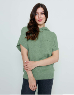 Жилет свободного кроя из натурального верблюжьего пуха с капюшоном.
