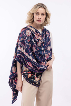 Яркий платок станет эффектным акцентом в образе. Рисунок на платке отличается цветом на каждой стороне изделия.