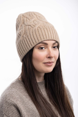 Теплая шапка из пуха монгольских верблюдов. Шапка выполнена толстой объемной вязкой "сложные косы".