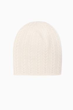 Двухслойная теплая шапка выполнена из 100% кашемира. Эффектная вязка - косы.