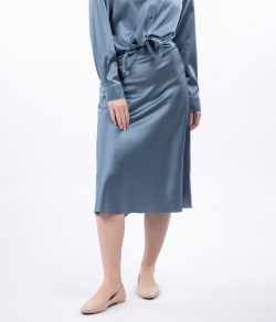 Шелковая юбка миди выполнена в очень актуальном на сегодняшний день крое. Атласная юбка – невероятно модный и женственный элемент гардероба, которым должна обладать каждая женщина. Она не только дарит приятные ощущения на коже, но и выглядит впечатляюще. Здесь дело не только в крое. Главная роль отведена материалу, который грациозно струится и словно обволакивает тело, сверкая на солнце, и обеспечивая комфорт. Атласная юбка миди – хит все модных блогов и стритстайлов этого года, в тоже время, это нестареющая классика, которая будет актуальна всегда. Юбка будет стильно выглядеть с базовой футболкой, топом и жакетом, кашемировым джемпером.