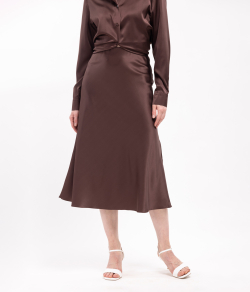 Шелковая юбка миди выполнена в очень актуальном на сегодняшний день крое. Атласная юбка – невероятно модный и женственный элемент гардероба, которым должна обладать каждая женщина. Она не только дарит приятные ощущения на коже, но и выглядит впечатляюще. Здесь дело не только в крое. Главная роль отведена материалу, который грациозно струится и словно обволакивает тело, сверкая на солнце, и обеспечивая комфорт. Атласная юбка миди – хит все модных блогов и стритстайлов этого года, в тоже время, это нестареющая классика, которая будет актуальна всегда. Юбка будет стильно выглядеть с базовой футболкой, топом и жакетом, кашемировым джемпером.