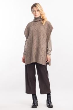 Уютный жилет из 100% кашемира высшей марки. Модель прямого свободного кроя с высоким воротом. Особенность модели - отсутствие боковых швов.