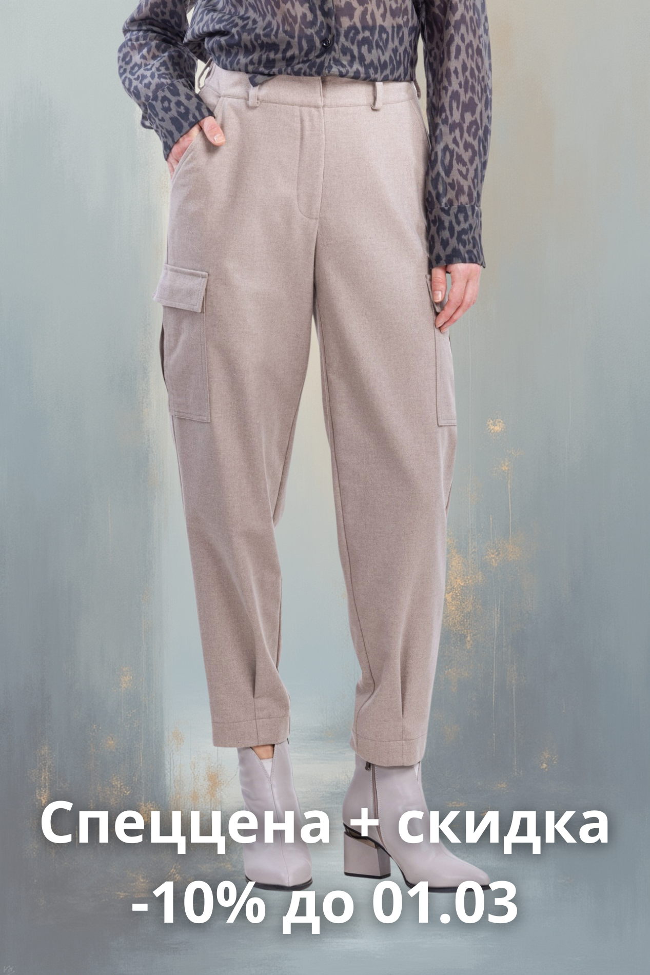 Следующая находка — стильные брюки «Эллада» из итальянской смесовой ткани с высоким содержанием натуральной шерсти. Этот материал отличается исключительными терморегулирующими свойствами, пластичностью и деликатным блеском, обладает высокой прочностью.