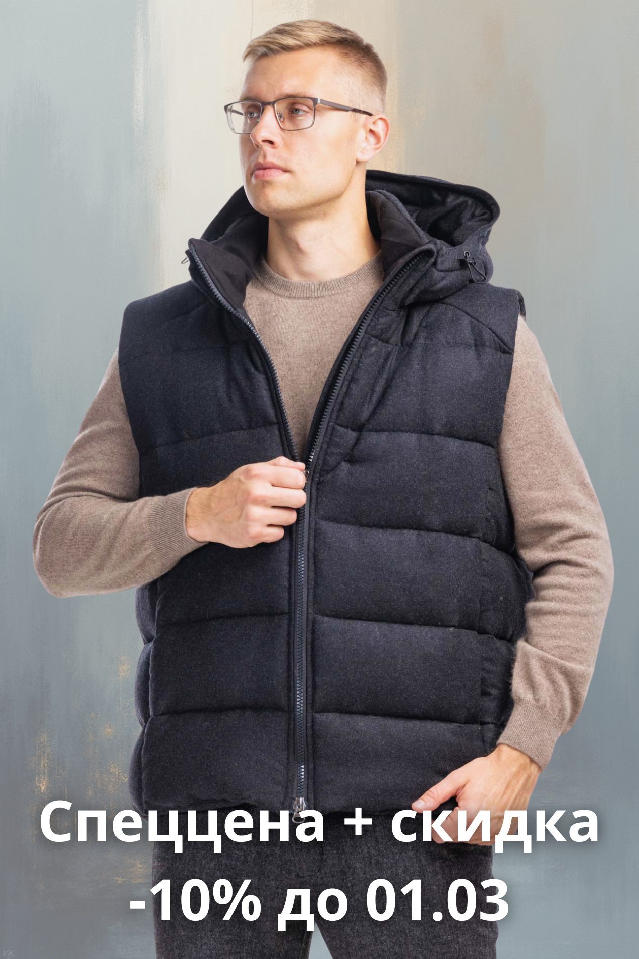 Настоящий клад, на который стоит обратить внимание — жилет «Джастин» с из кашемира и шерсти с наполнителем из 100% верблюжьего пуха.